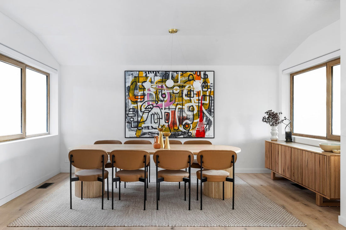 How to avoid it: The centre of your artwork should be at eye level, which is roughly 150–160cm from the floor. Use this as a general guide, but also consider the height of your furniture. If the piece is going above a couch or bed, make sure there’s some space between the frame and the furniture—around 15–20cm is a good rule of thumb.